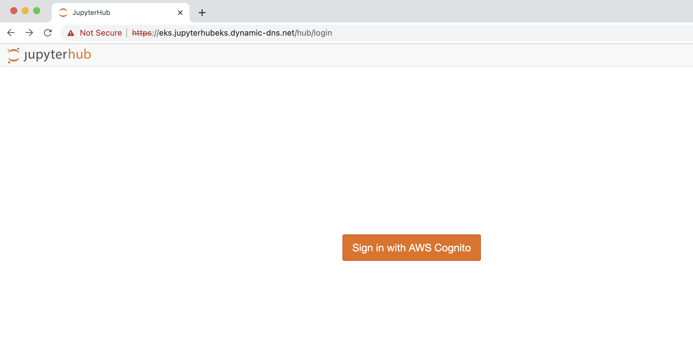 이제 브라우저에서 도메인 URL을 입력하면 JupyterHub 로그인 페이지로 리디렉션됩니다.