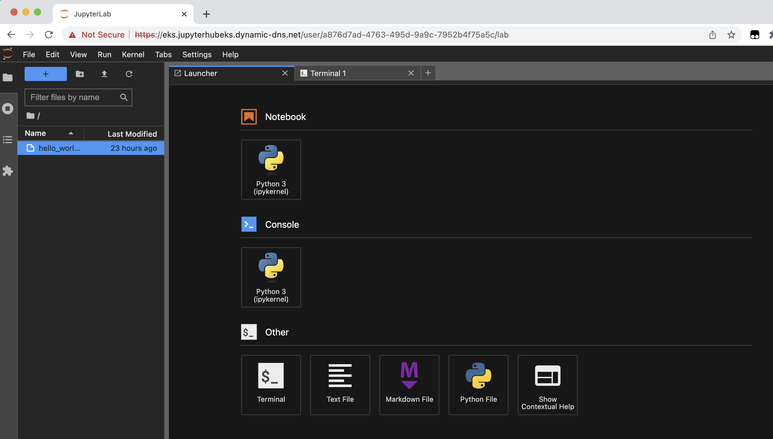 성공적인 로그인은 로그인한 사용자를 위한 JupyterHub 환경을 엽니다.