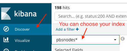 Once your indexes are configured, go to Kibana, select "Discover" tab to start visualizing the data