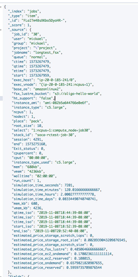 | Data uploaded | Host Info (status of provisioned host, lifecycle, memory, cpu etc ..) | Job Info (allocated hardware, licenses, simulation cost, job owner, instance type ...) | Desktop Instance EC2 information | Target Node EC2 Instance information |