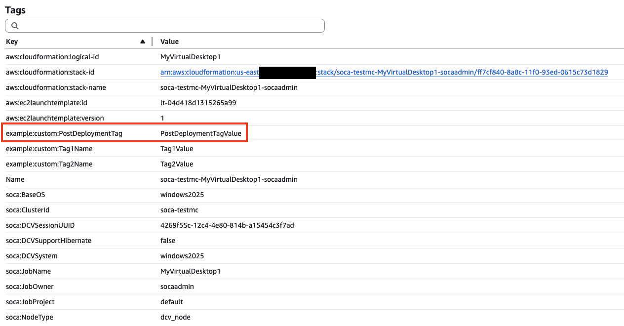 Now go back to EDH and launch a new resource, your new tag (example:custom:PostDeploymentTag) will automatically be applied: