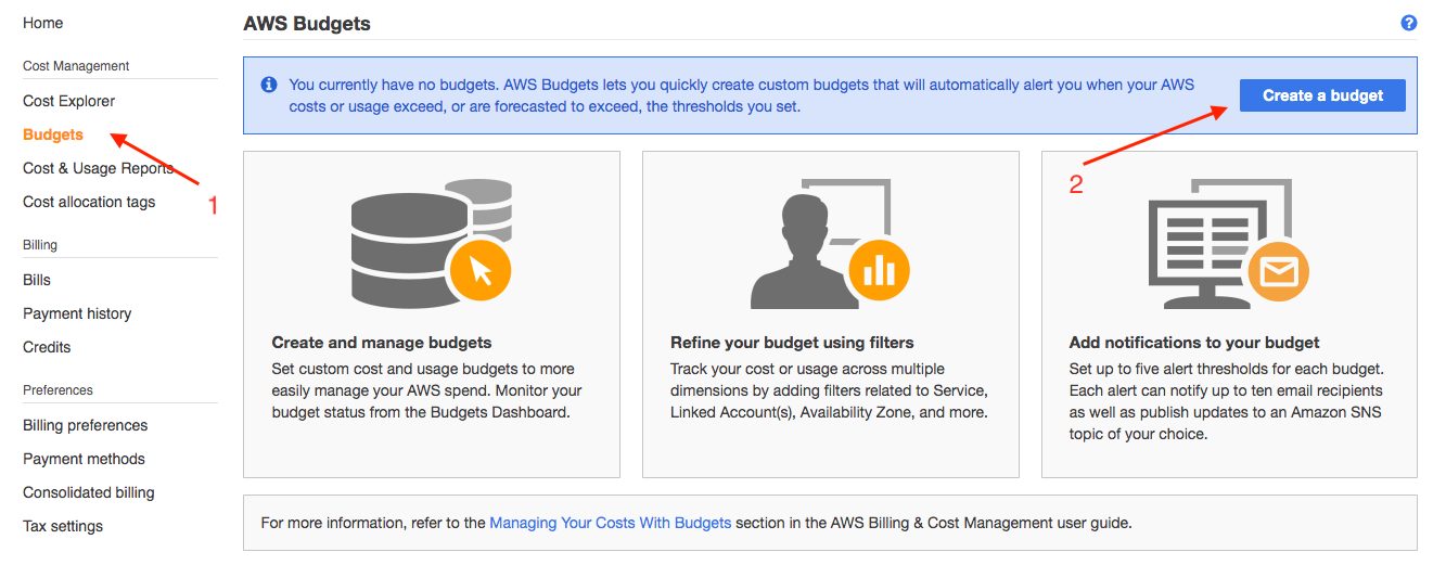 Set up a email notification when your budget exceed 80% then click "Confirm Budget"