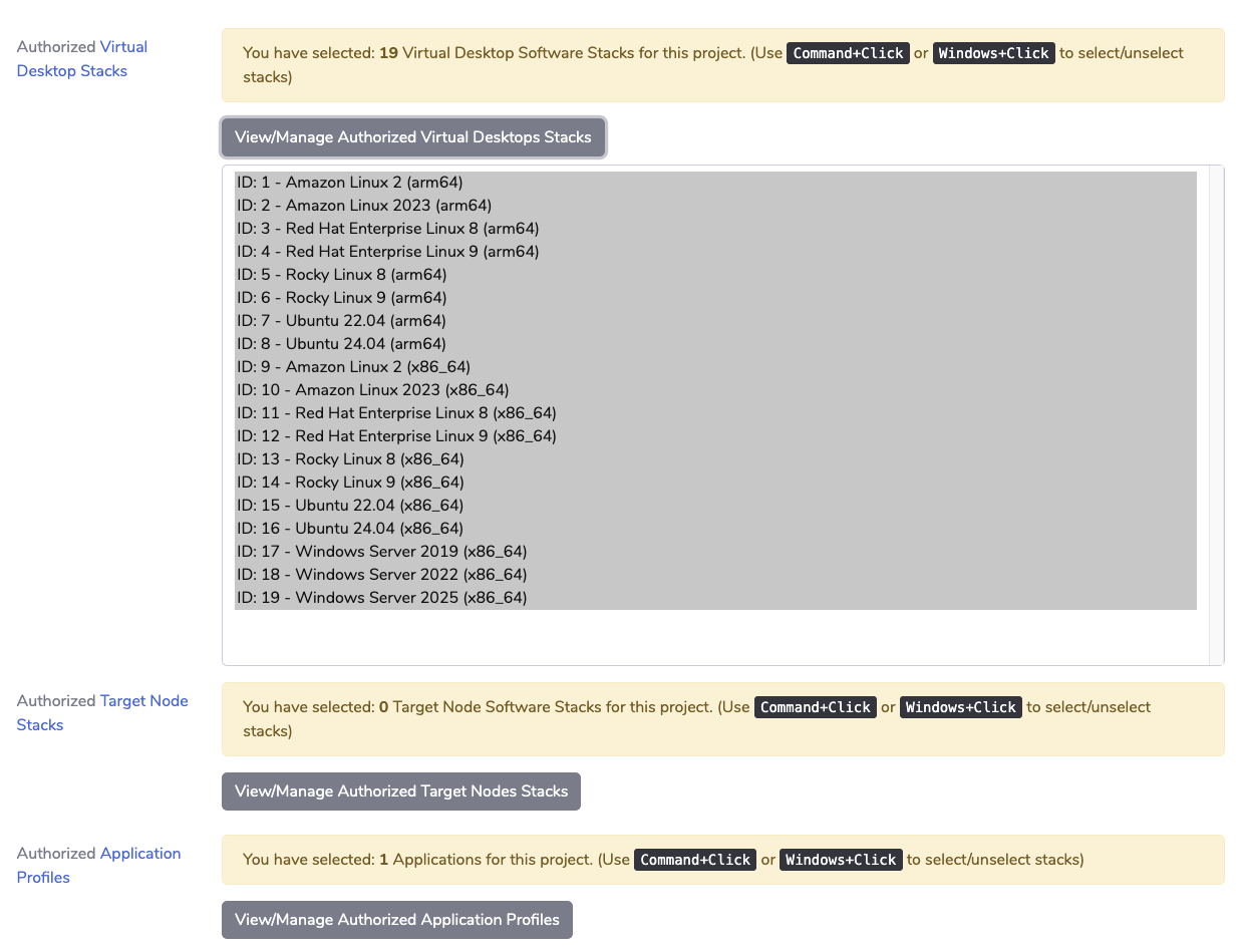 For example, you can choose which users are allowed to deploy Virtual Desktop Software Stack, Target Nodes Software Stack or Applications for web-based Job Submission.