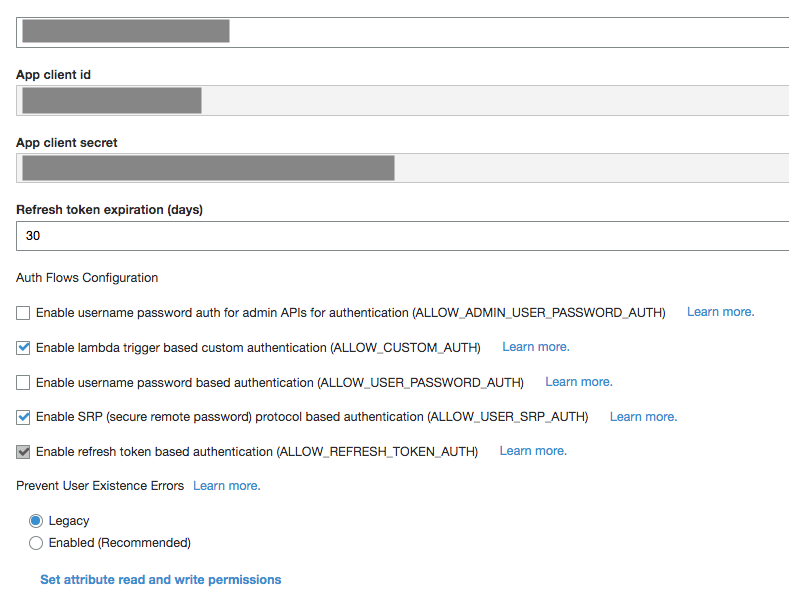 On Cognito interface, click User Pools > Federated Identities then General Settings > App Clients and finally click Add Another App Client.
