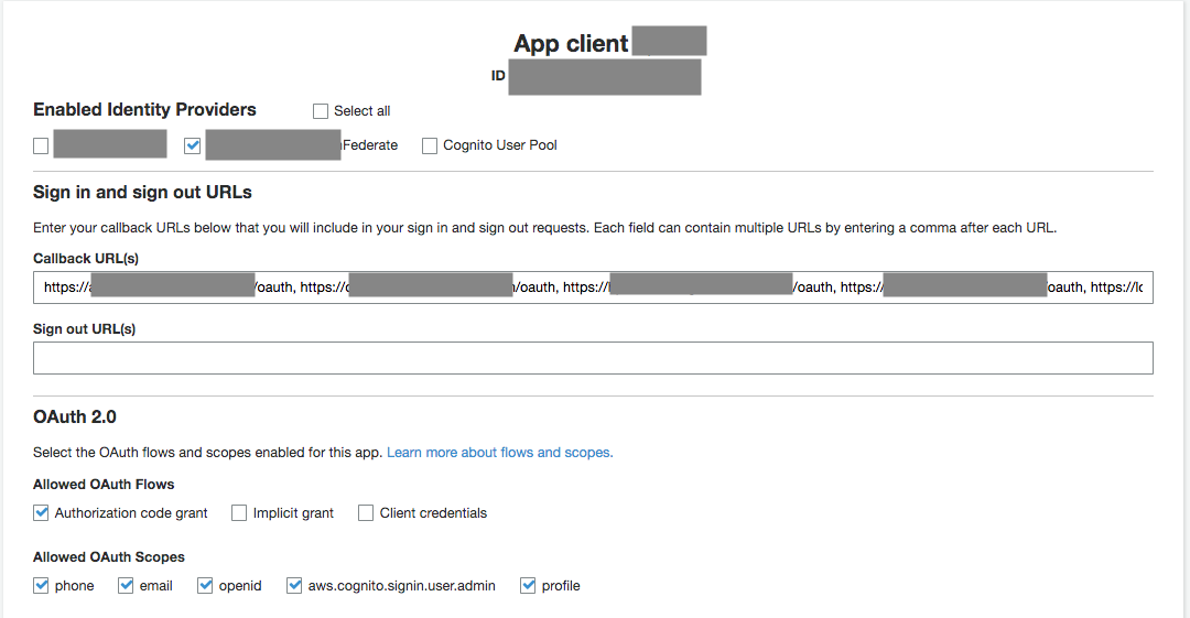 You also want to specify the callback url(s) for all domains you are planning to use. The default callback URL you must specify is https://<your_soca_elb_name>/oauth but you can add any other URL if you have multiple environments (e.g: dev/test)