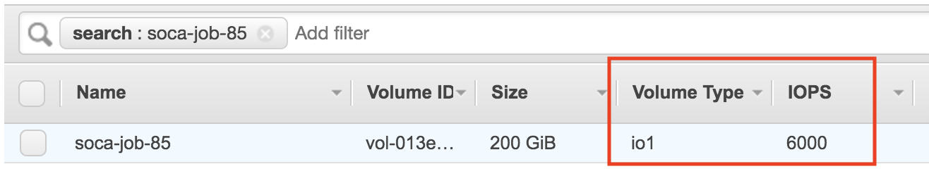 Looking at the EBS bash, the disk type is now "io1" and the number of IOPS match the value specified at job submission.