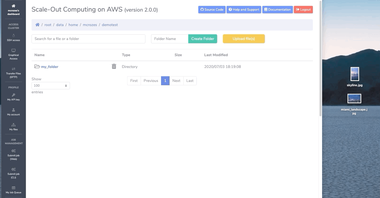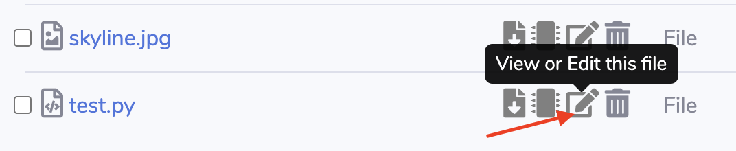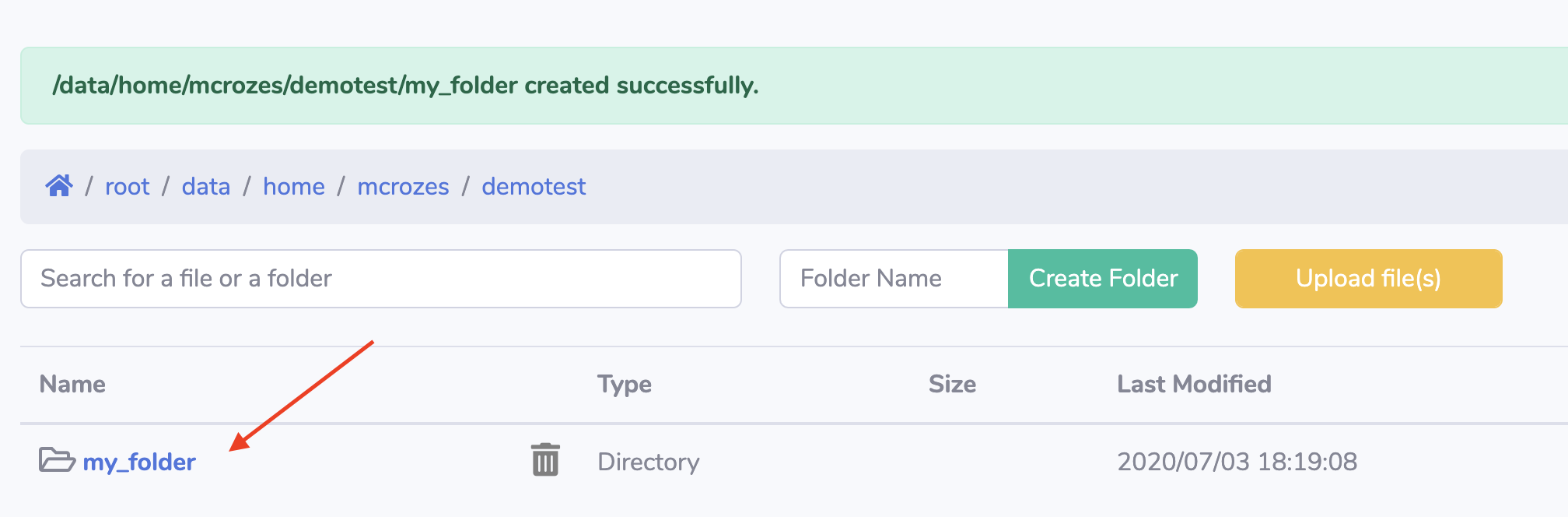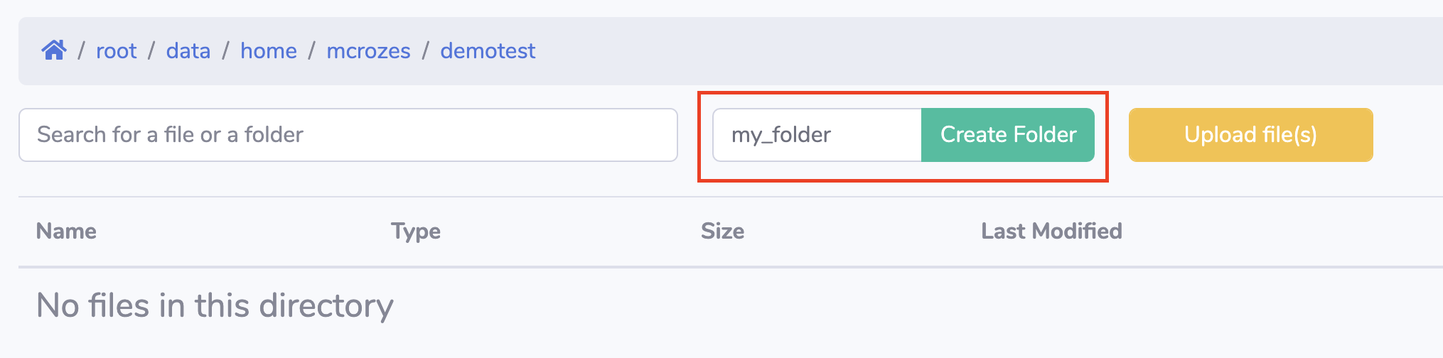 If you have created a file via SSH/DCV and this file is not yet visible, simply force a cache refresh by clicking the grey button.
