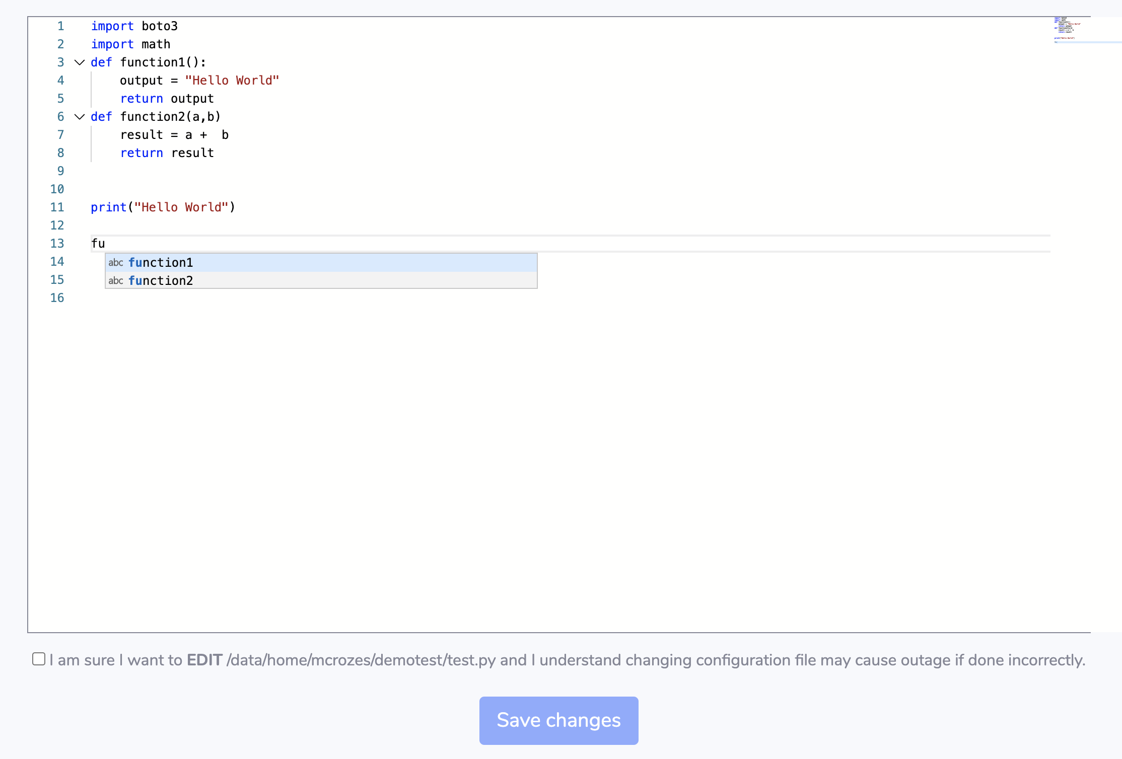 This will open a text editor. The editor includes syntax highlights and auto-completion.