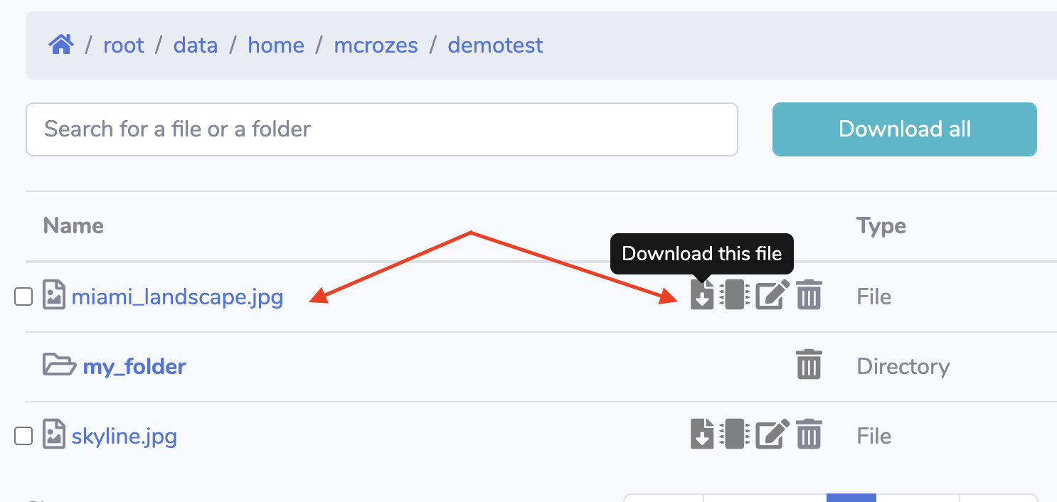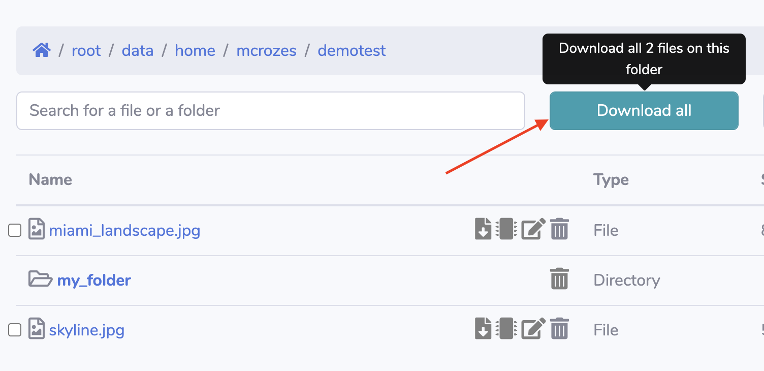 Click "Download All" button to download all files from the current working directory ( will create a zip archive)