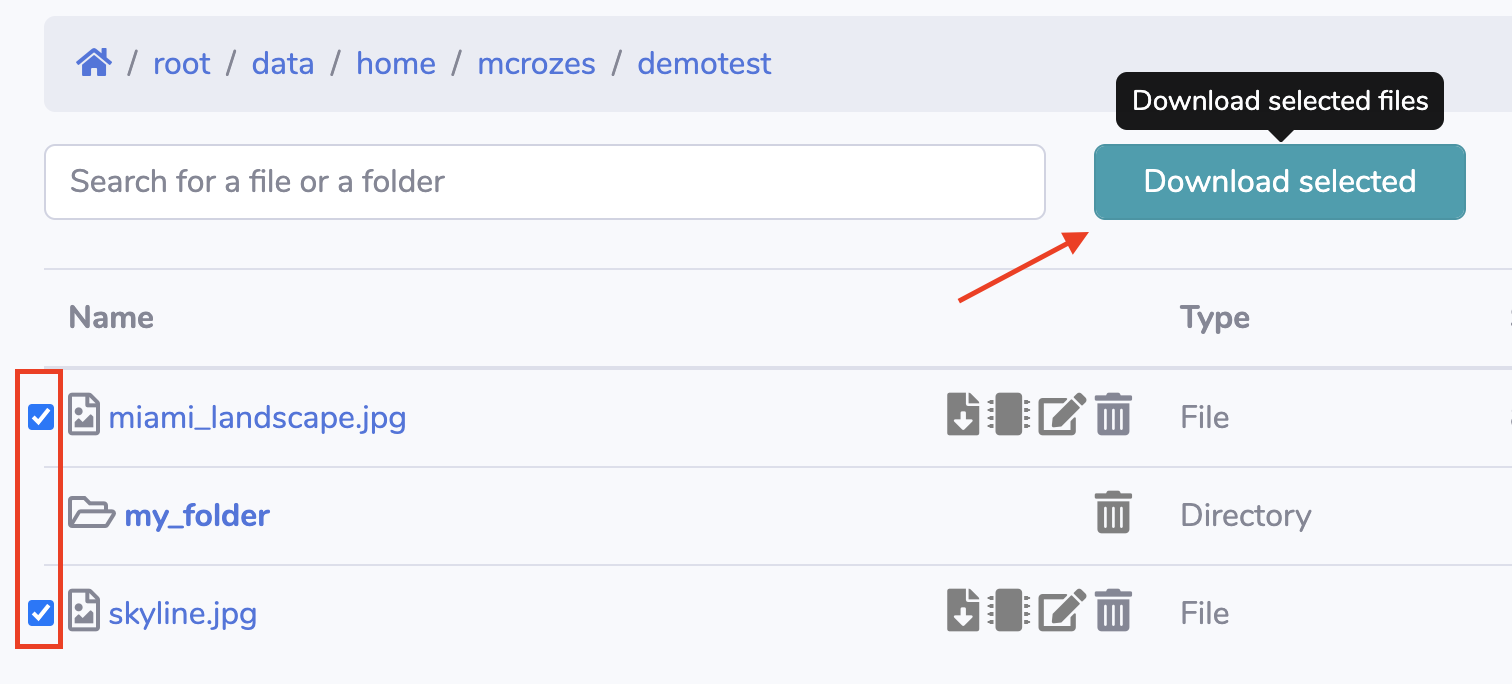 Select the files you want to download by checking the assigned checkboxes them click "Download Selected" button.