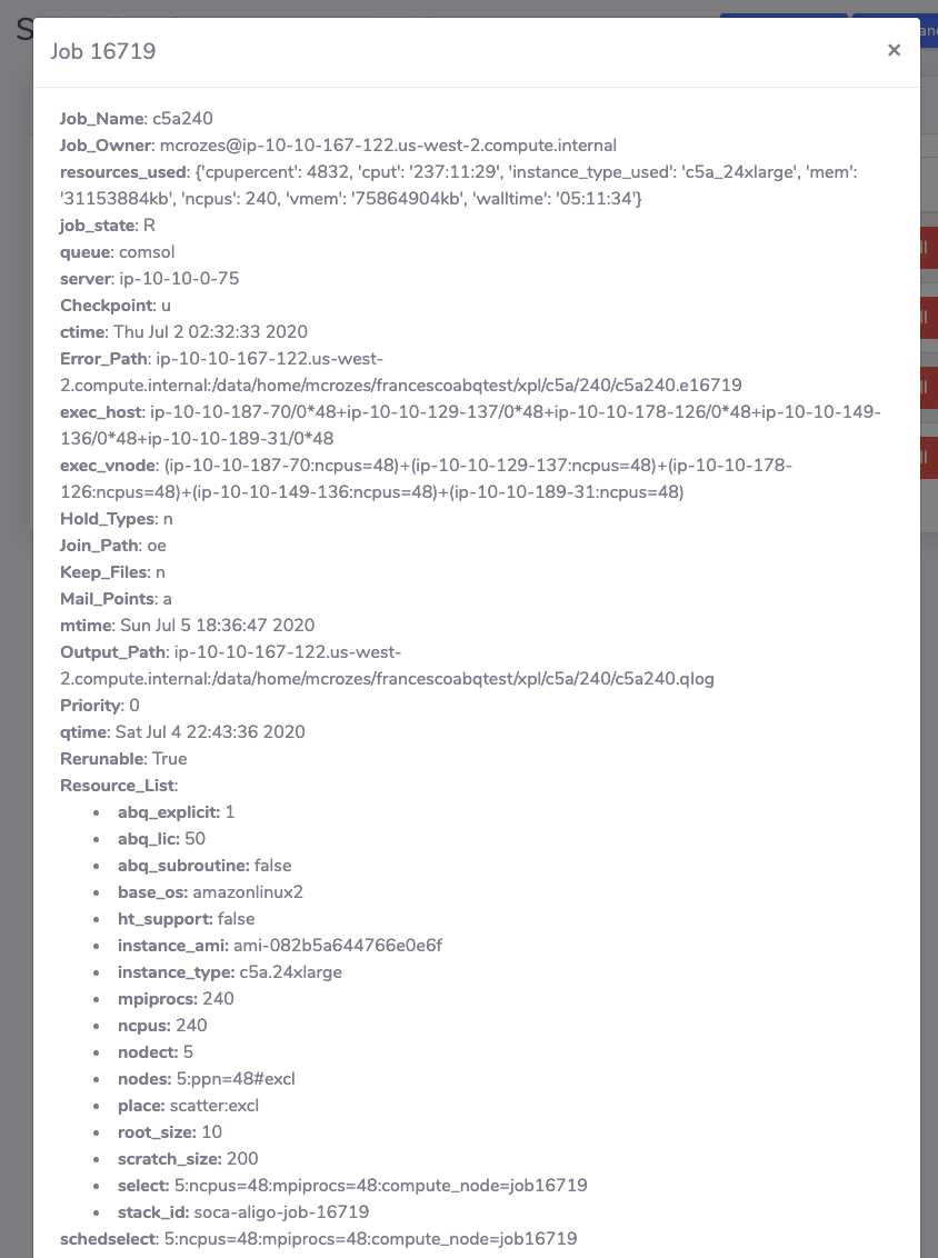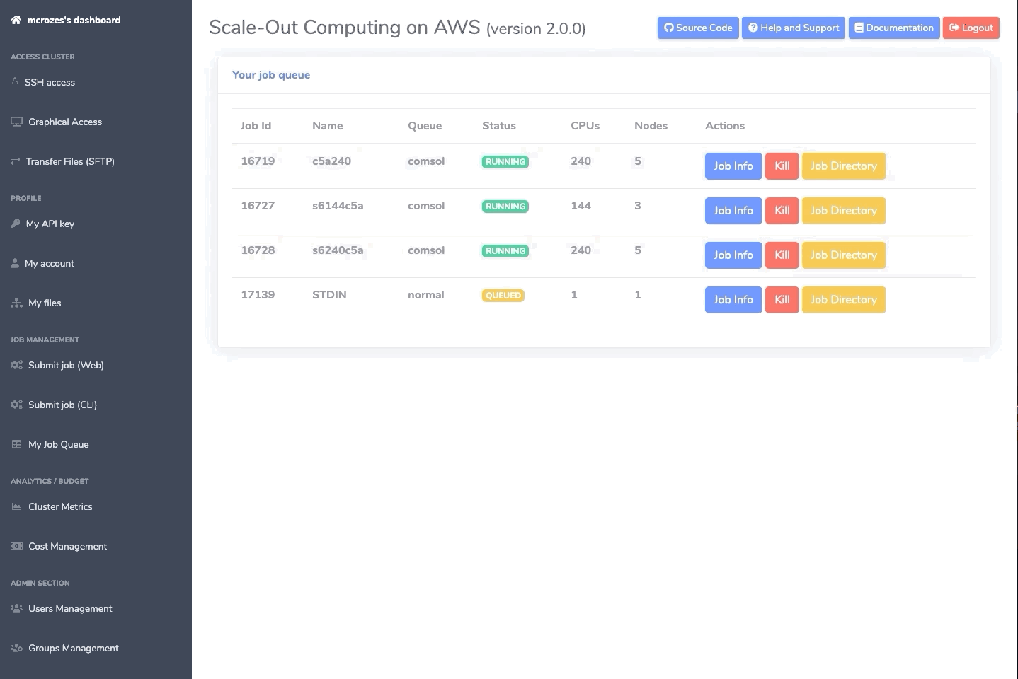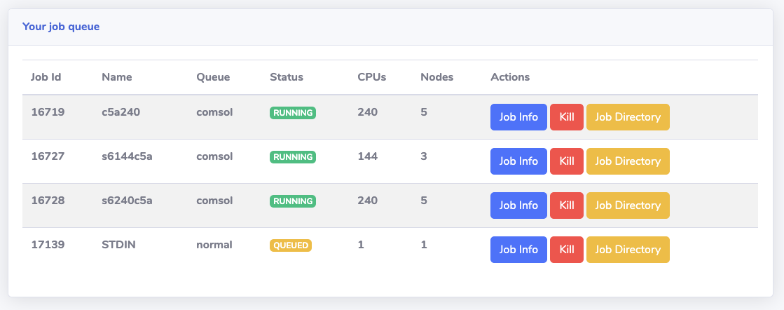 "My Job Queue" section let each user access their jobs information via the web interface.