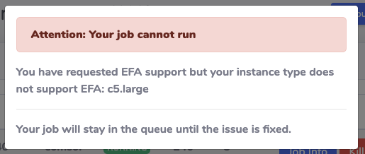 Invalid configuration (request EFA but use an instance without EFA support)¶